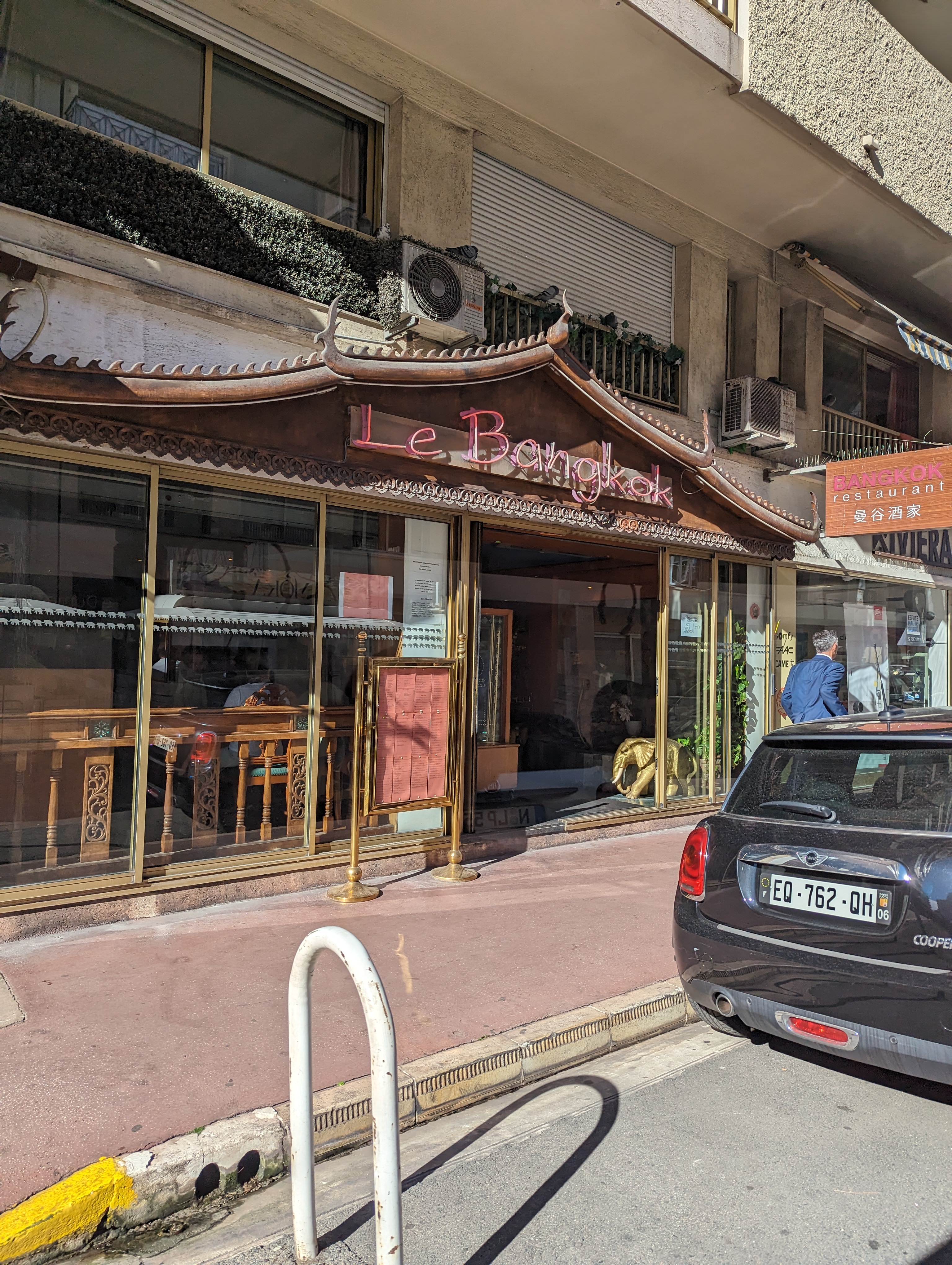 J'ai dîné trois fois dans ce restaurant. Il s'agit d'un restaurant thaïlandais de style ancien proposant diverses spécialités asiatiques. Une valeur sûre. Je commande toujours le Bo bun qui est copieux ainsi que le Boeuf basilique pimenté pour mon fils. Nous aimons aussi les Beignets de pommes. Le service est correct. Le restaurant est grand et généralement calme, attirant une clientèle locale. La seule chose que je n'aime pas, c'est le vin de la maison. Il provient manifestement d'un vin en cubi et n'a pas bon goût. A part cela, le restaurant offre un très bon rapport qualité prix pour Cannes.